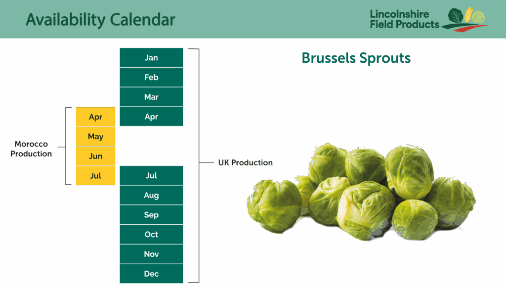 Our premium Brussels Sprouts are grown with care and expertise in the fertile fields of South Lincolnshire, delivering excellent flavour, texture, and consistency. Predominantly harvested during the cooler months, typically from October to March, although we do specialise in early production with our new season crop available from 1st August most years. They’re known for their distinctive taste and impressive nutritional value—rich in fibre, vitamin C, and antioxidants. Ideal for retail, catering, and processing, our sprouts are carefully selected and packed to maintain freshness and quality. Whether roasted, steamed, or used in festive dishes, they are a versatile and wholesome addition to any plate.